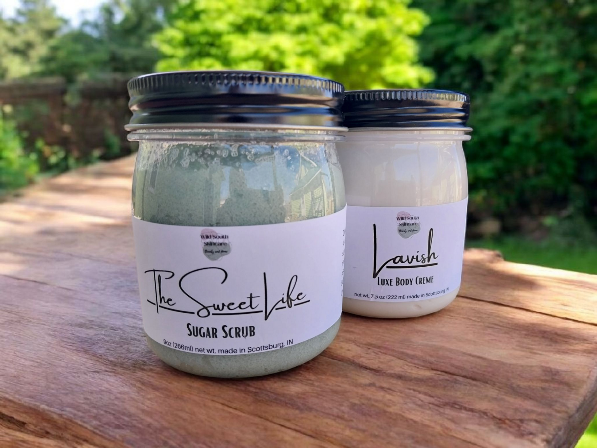 Reveal smoother, softer skin with our Body Care Duo! Our unique sugar scrub has a creamy texture, combining the benefits of an oil scrub and a foaming scrub all in one. Gentle yet effective, this scrub will leave your skin feeling refreshed and rejuvenated.